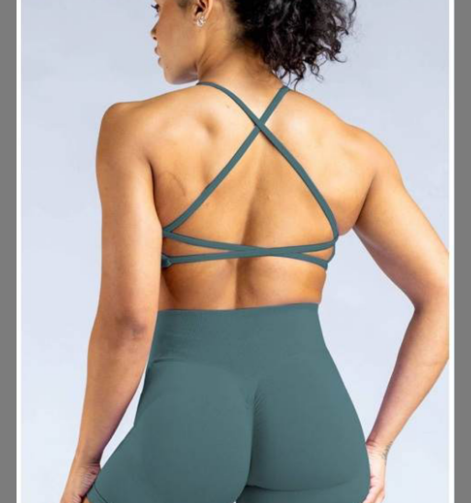 - الاسم: High-elasticity, shock-absorbing, cross-back, open-back, seamless sports bra